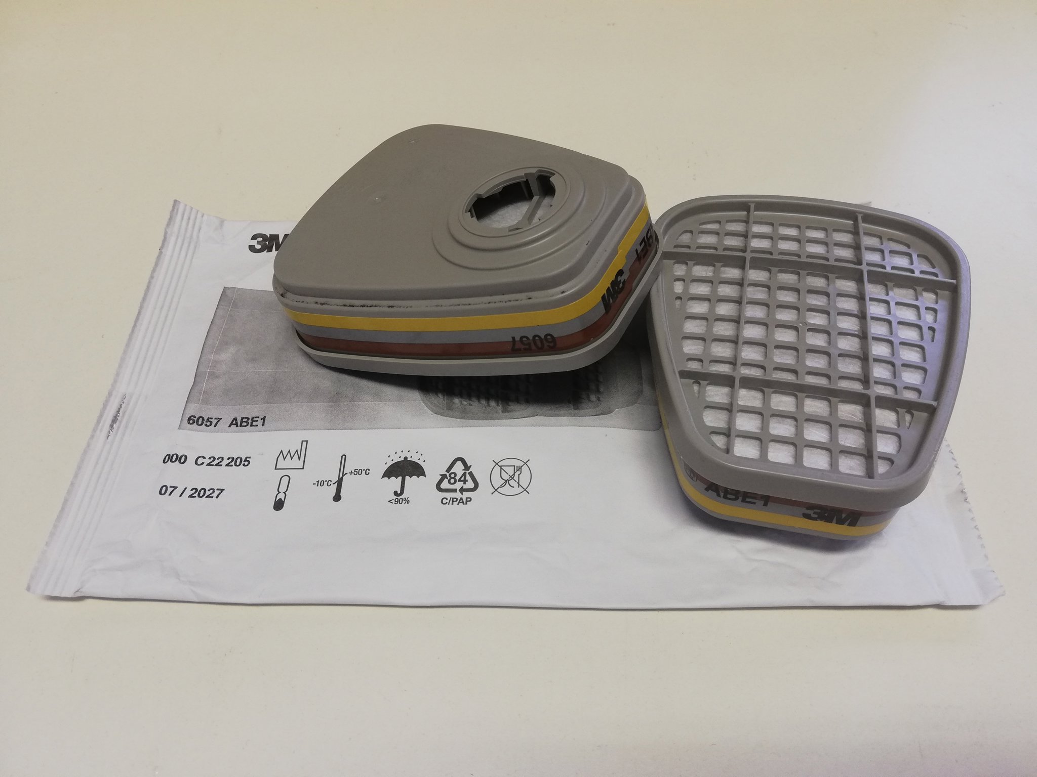 Ces caractéristiques rendent les filtres ABE idéaux pour la protection contre les vapeurs d'acide oxalique. Faites attention au code couleur typique en brun, gris et jaune indiquant l'appartenance à la classe ABE.