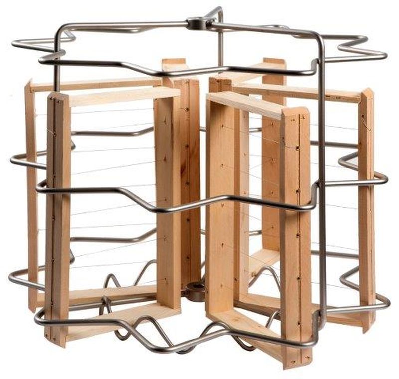 Le panier est spécialement adapté aux cadres de type Schweizer-Stock (avec un anneau supplémentaire dans le panier) et permet d'extraire 9 cadres d'une hauteur maximale de 18 cm et d'une longueur de barre supérieure comprise entre 27 et 48 cm.