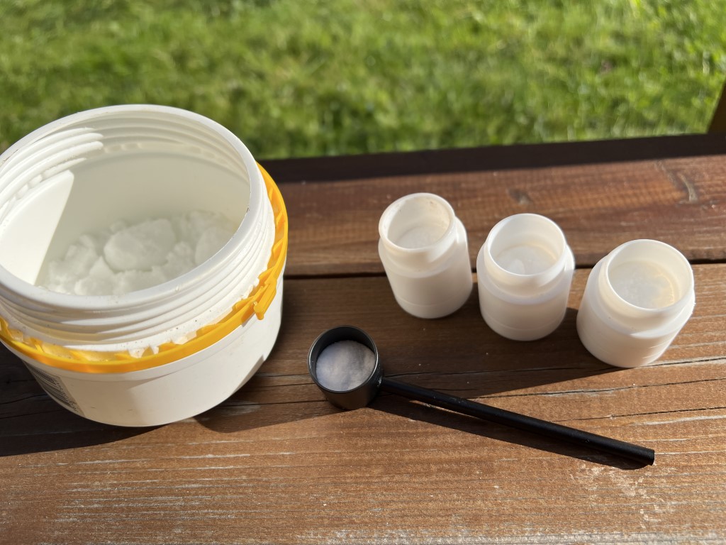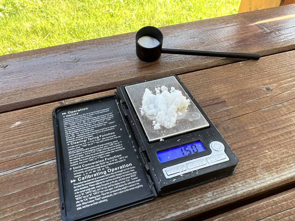 - Zubereitung der Oxalsäure: Messen Sie mit dem mitgelieferten Löffel etwa 1-2 g Oxalsäure in jede Kappe.