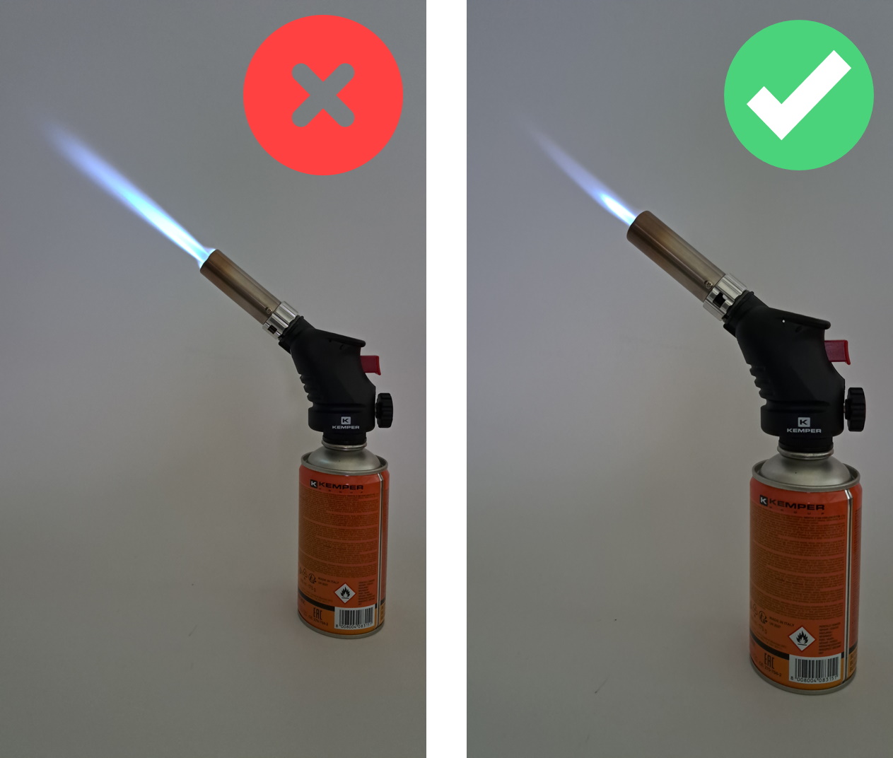 Der Gasbrenner verwendet für seinen Betrieb Gaskartuschen mit Gewinde, was eine einfache und stabile Befestigung des Kopfes an der Kartusche gewährleistet.