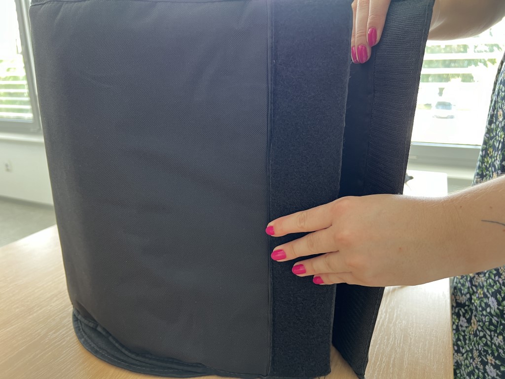 Wickeln Sie den Heizmantel fest um den Behälter und befestigen Sie es mit dem Klettverschluss.