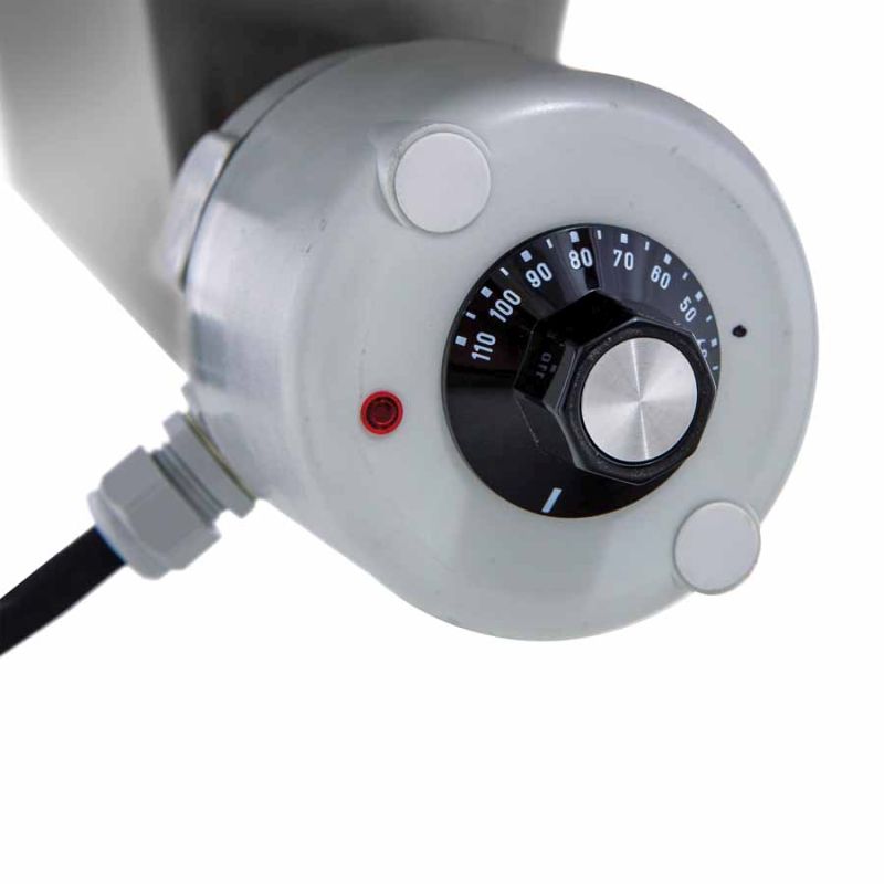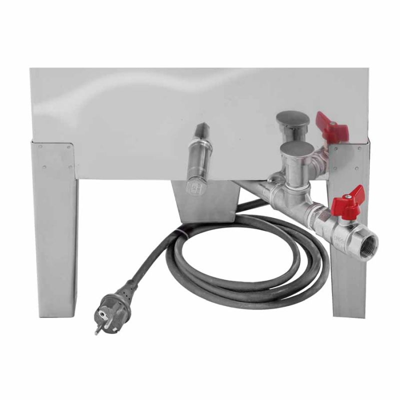 - Tauchrohrheizkörper 3 kW/230 V mit Temperaturregler 30–110 °C und Trockengehschutz.